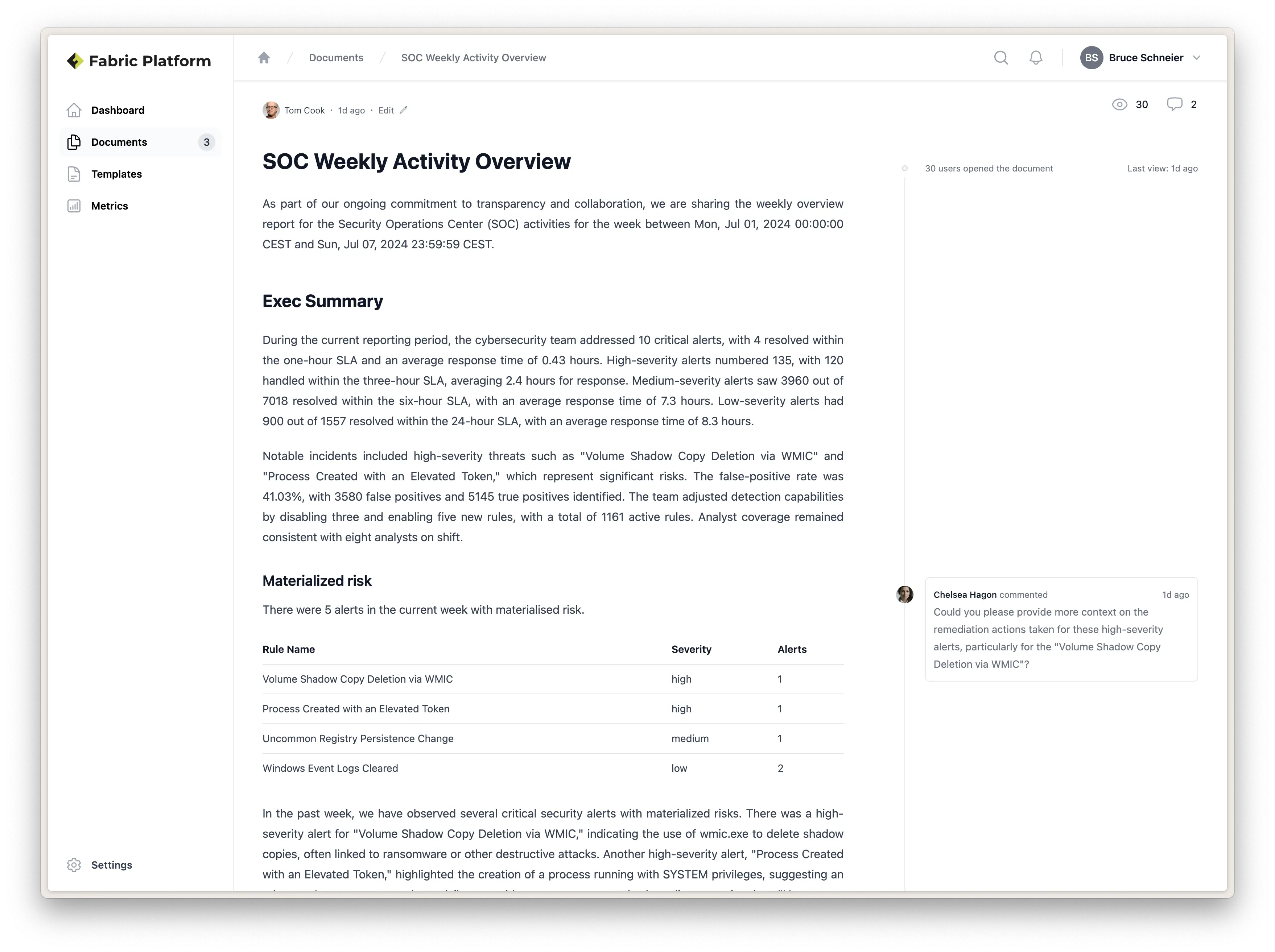 An advanced private-cloud reporting platform with sharing, collaboration features, engagement tracking, and operational metrics.